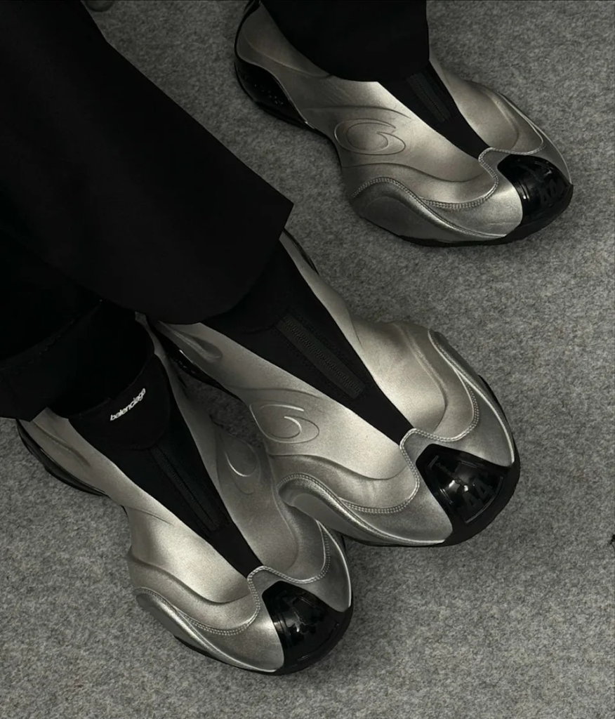 Here’s a visual look at Balenciaga’s new Basketball Sneakers—from metallic and distressed textures to sculptural silhouettes—highlighting how bold and striking the design is.