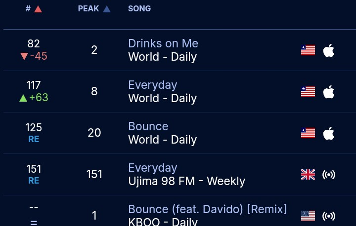 The remix transformed Kobazzie’s original “Bounce” into a cross-border sensation, blending Liberian flair with Davido’s Afrobeats charisma. Its peak at No.1 showcased massive local support, while the song’s catchy hooks and high-energy production fueled viral dance challenges and radio dominance.