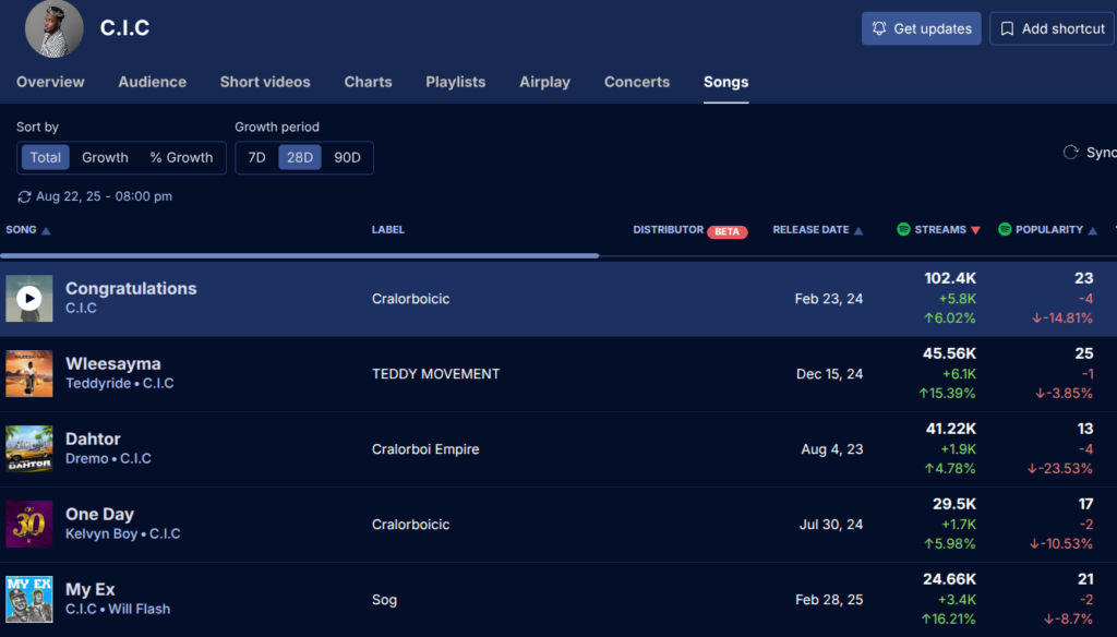 From timeless hits like “Pon It” to new anthems like “Baby” and “Congratulations,” C.I.C continues to prove his global appeal as Liberian music dominates streaming platforms.