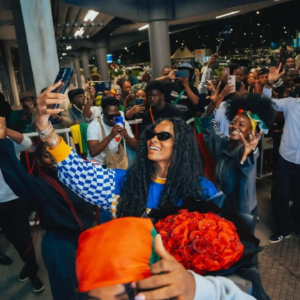 Her beauty team, including makeup artist Ngozi Edeme and hairstylist Rachael Banjo, completed the look with soft pink glam and a half-braided hairstyle that nodded to her roots while complementing the avant-garde outfit. Tyla’s decision to go topless beneath the bolero added a daring edge, reinforcing her status as a trendsetter unafraid to push boundaries.
